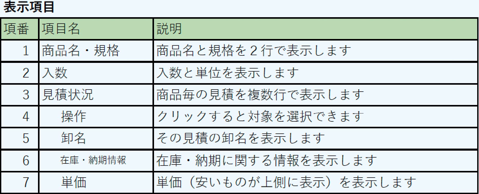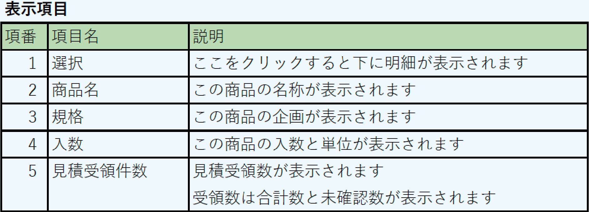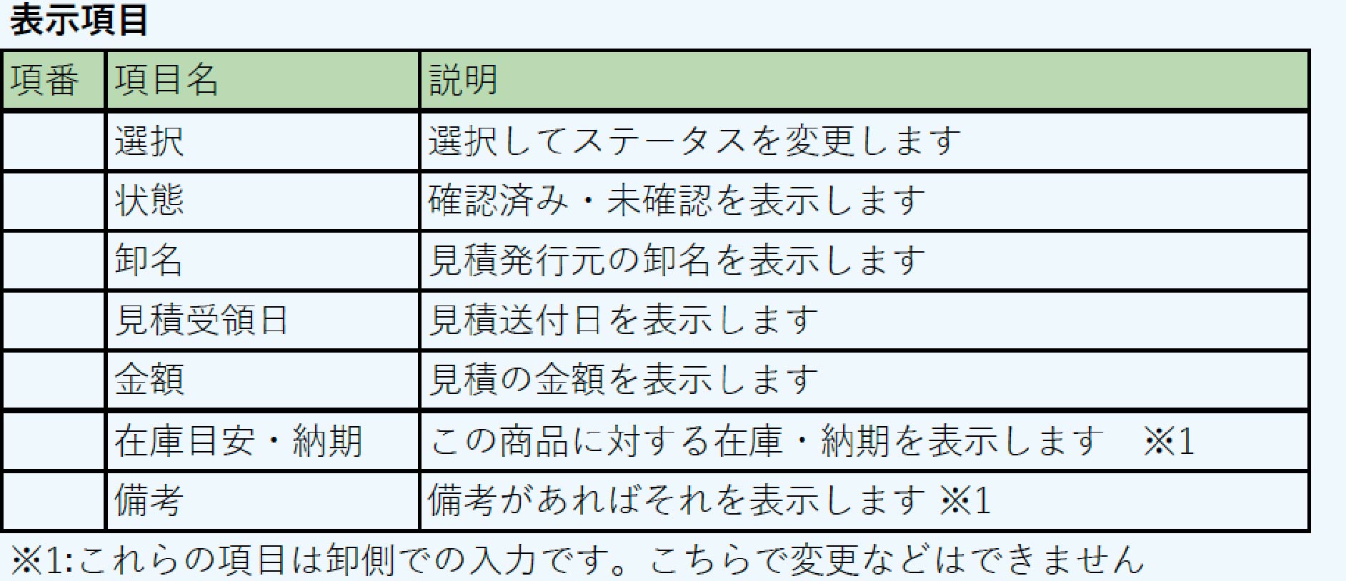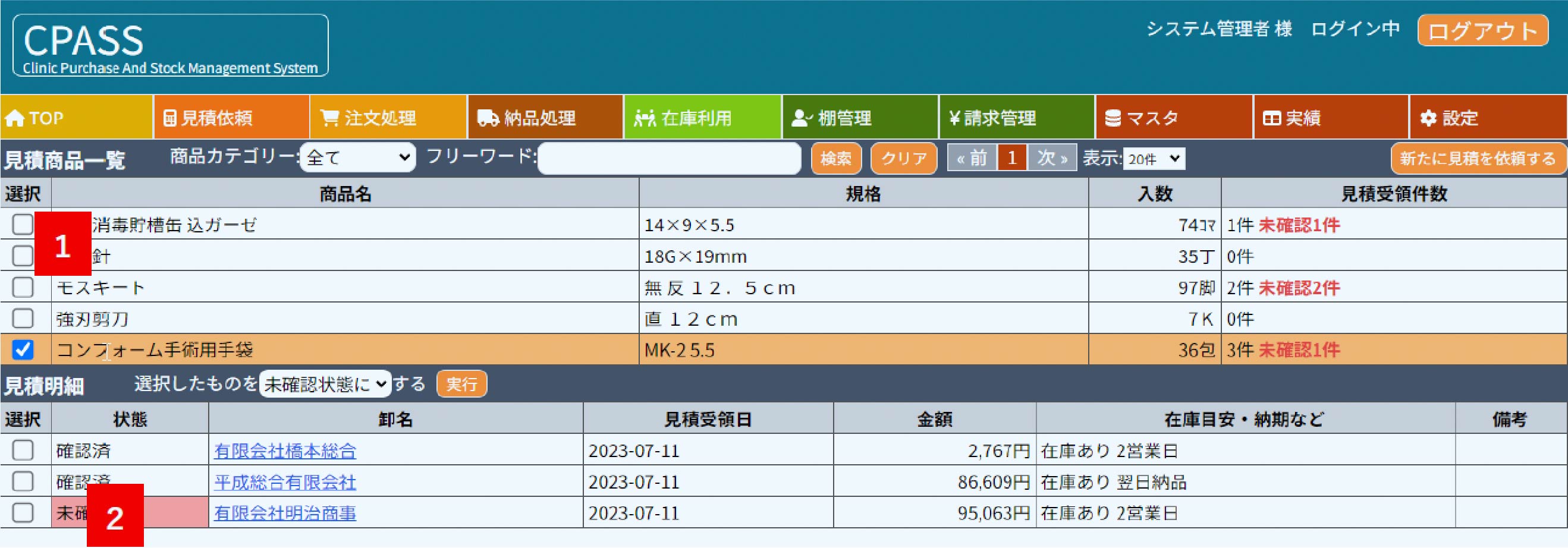 選択された商品に付随する見積が一覧表示されます。選択して、その見積を確認済み、未確認、削除することが可能です。