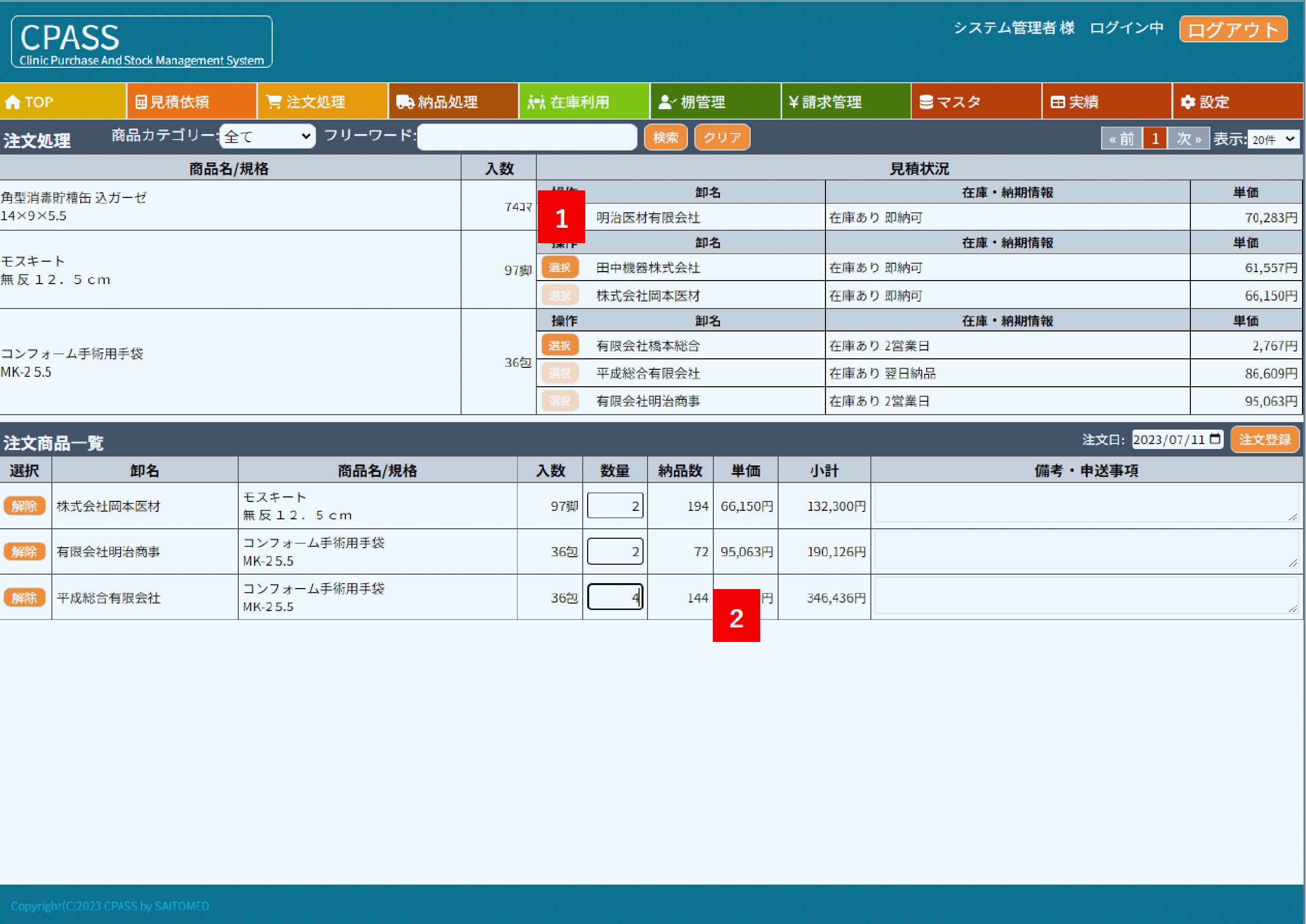 *1 管理者側の設定で仕入れ金額を利用者に非表示にすることも可能です。
